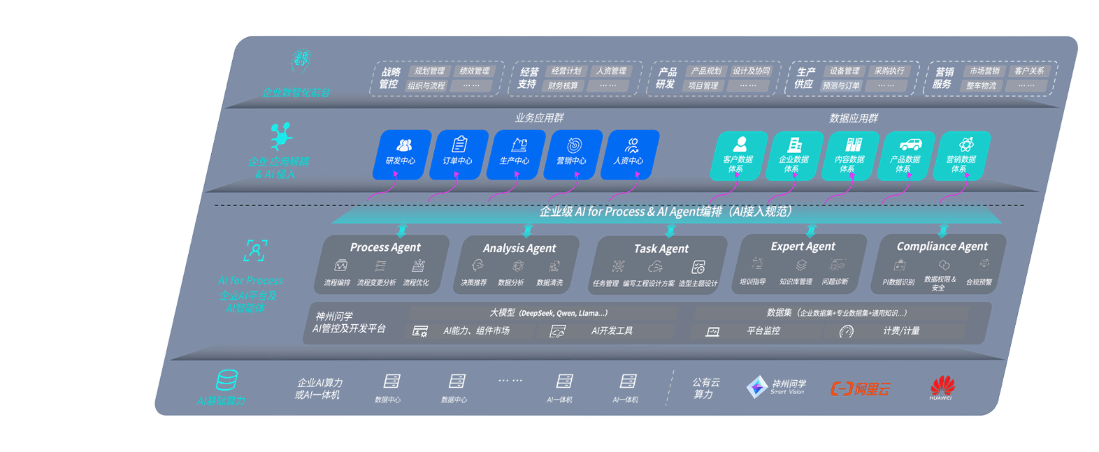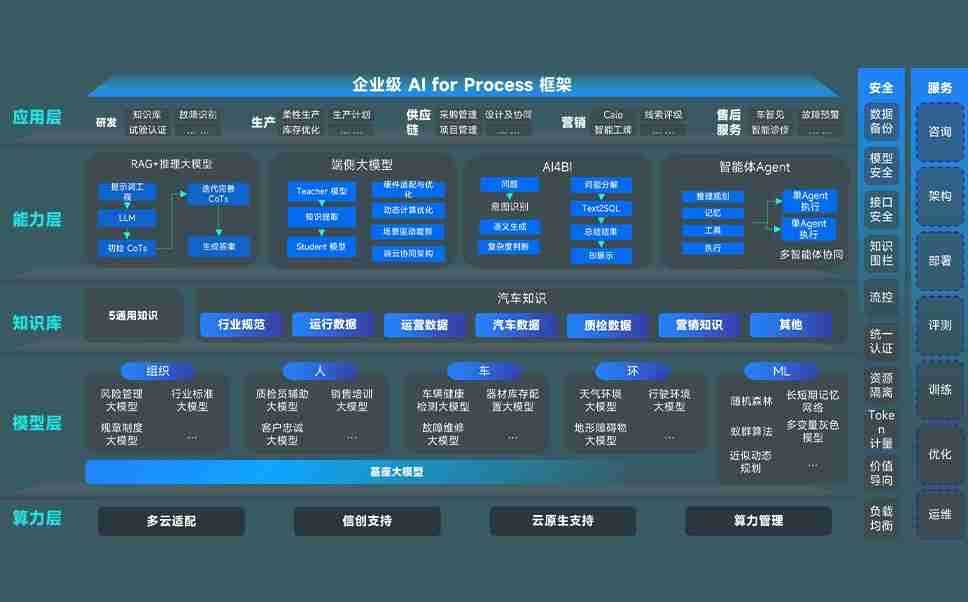 金沙990CC问学智车解决方案是一套基于AI技术的汽车行业智能化系统,,,覆盖从底层算力到顶层AI应用的全栈方案。。。方案由算力层、、、、模型层和应用层组成:算力层,,,,方案支持多种一体机配置,,具备云端灵活部署、、、、多云适配以及动态优化计算资源的能力;模型层,,,,金沙990CC问学平台版提供了企业级AI应用一站式构建与管理平台,,,,支持基于后训练强化技术的汽车企业专属模型的训练、、、、评测和运营;应用层,,,,金沙990CC问学DeepSeek版提供包括超级员工、、、智能招采、、智能营销、、、、智能客服、、AI for BI等一系列解决方案,,,,可助力汽车行业实现数字化转型,,让管理更智能、、、、响应更敏捷。。。