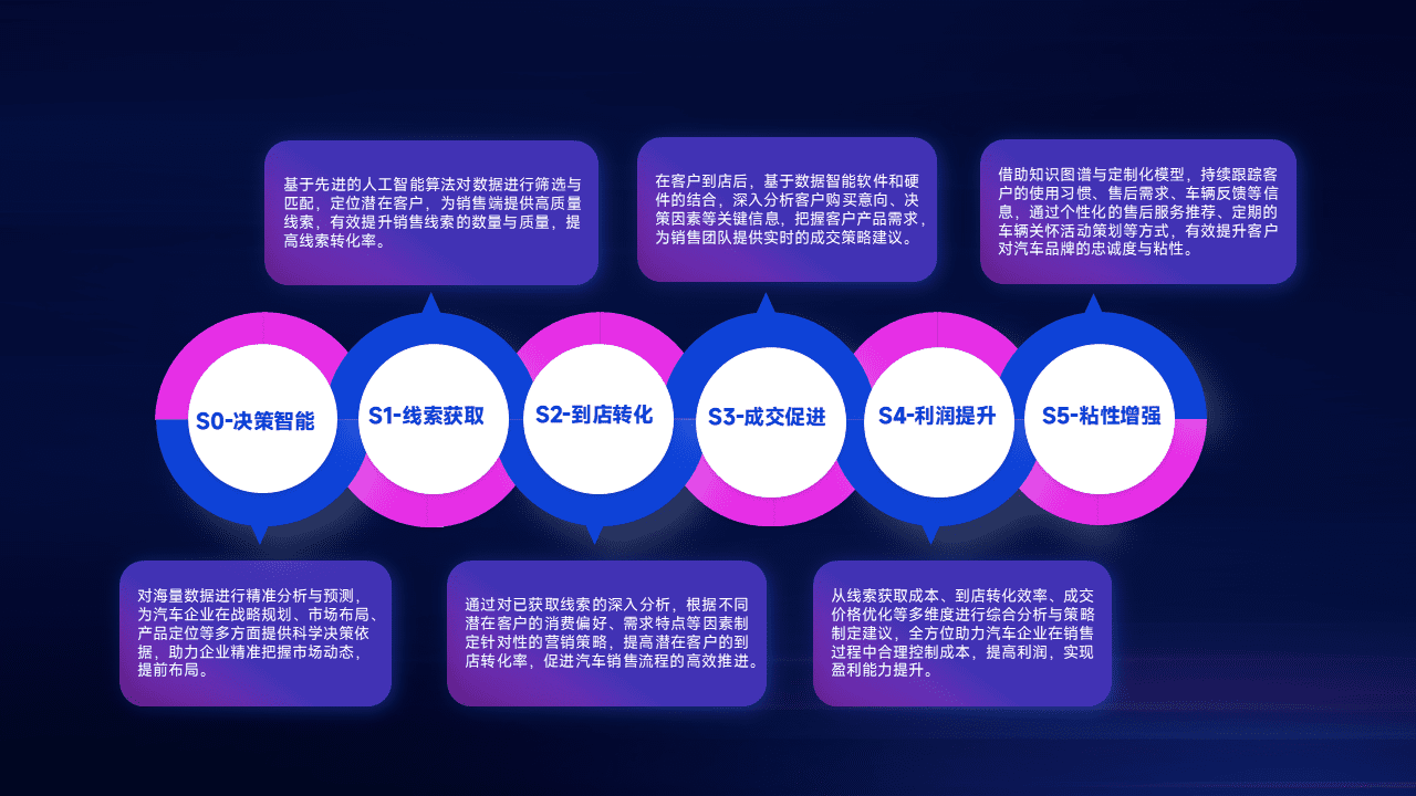 通过拓宽潜在客户来源、、优化线索分配并提高到店转化率,,,,以增强销售效率。。同时,,,,利用线索数据不断优化分析模型,,,有效提升转化率,,,,扩大营销影响力。。。。